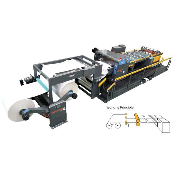 High Precision Synchronize - fly Sheeter features fibre-less and clean cuts with high dimensional precisions. Best for board paper, art paper, kraft paper and packing paper or board etc.